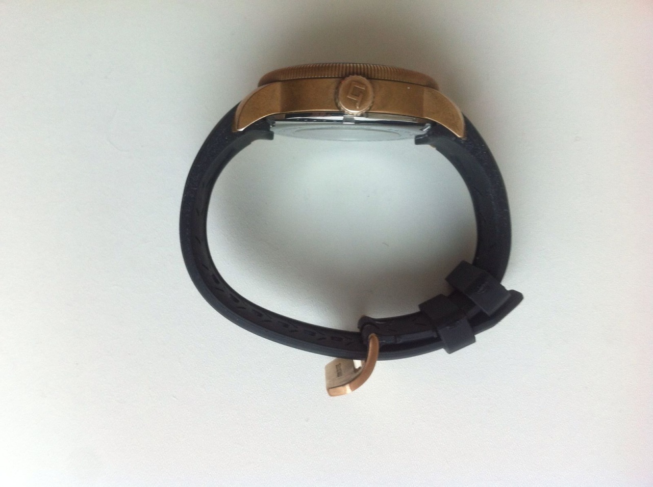 В комплекте два ремешка: кожаный и черный каучук с бронзовой пряжкой.