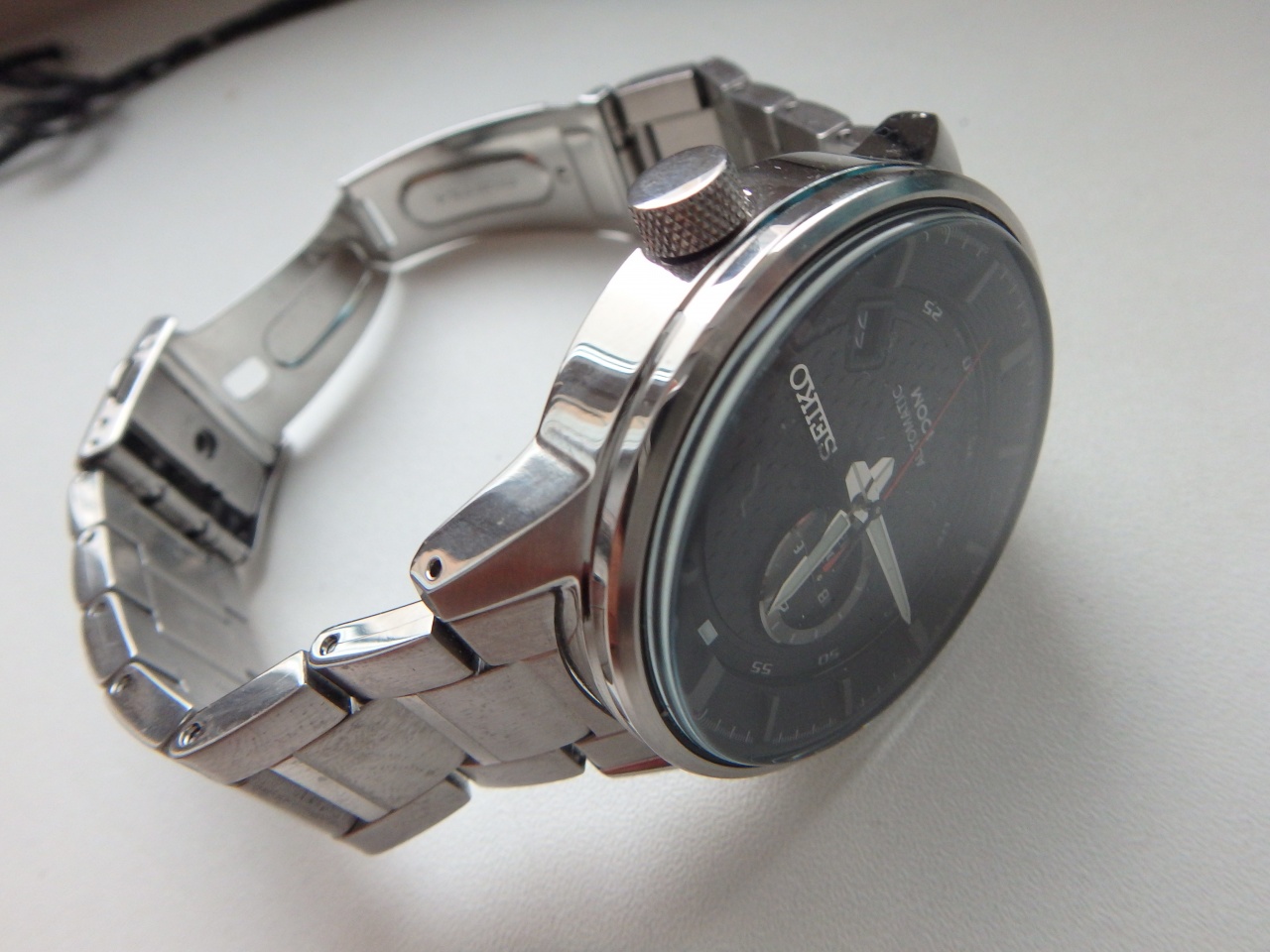 по ссылке (там про 6R15, это почти то же самое). Первое, на что обращаешь внимание - часы увесистые. Масса посылки с часами была 632 грамма. И наверное четверть этой цифры весят сами часы. После подгонки браслета по руке ситуация стала чуть лучше (убрал три звена). Через пару дней к тяжести часов уже привыкаешь. Помимо веса, брутальный имидж часам добавляет корпус. Полированная сталь, высота 14мм,четкие рубленые грани, ровные плоскости. Нет даже намека на какие-то изогнутые линии или выпуклые/вогнутые поверхности.