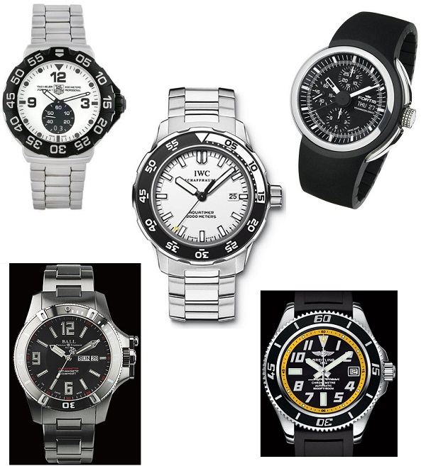 • IWC Aquatimer Automatic 2000. Классический дайвер. В стали, корпус диаметром 44 мм, водонепроницаемый до 2000 метров. Цена $ 5,400.