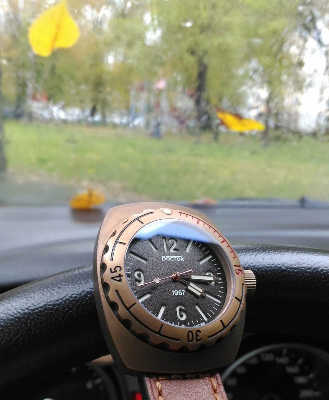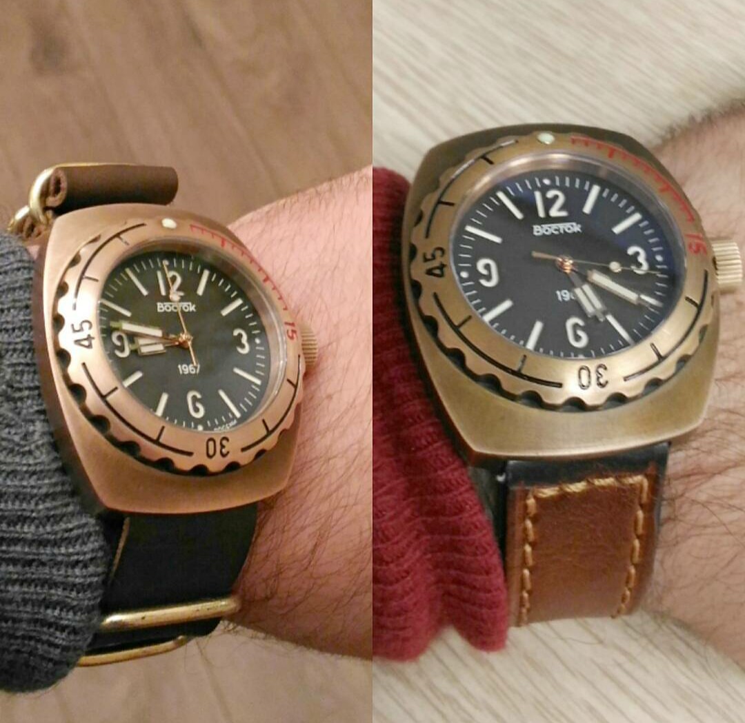 Часы носились, покрыты патиной, состояние отличное. Выглядят очень солидно и достойно. Ход точный. Учитывая проблемы производителя с герметичностью, для избежания проблем, была установлена прокладка от стандартной Амфибии. Продаю, пока не передумал, по причине, что нужны деньги. В комплекте отдам штатный ремень с баклей, кожаный натовский ремень, кожаный вощёный ремень steinhart с шикарной строчкой и с бронзовой массивной баклей. Все ремни есть на фото. Часы носятся редко, не последние в коллекции. Пока продаю, а там может ещё передумаю.))