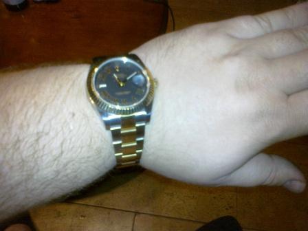 Наконец пришла пора забирать долгожданный прибор.Rolex прибывал в Питер,а я,болезный,грустил в Мурманске.Купил билет и полетел.Все примерки сделал заранее в отпуске,на Канарах,там большой выбор.Брать сразу не стал.Смущал размер 41мм,но жена убедила,что все хорошо смотриться.Hoшу только крупные часы:Pam,Corum,Arnold & Son,но решил уменьшаться,уже не мальчик(если 39лет,то молодой человек?).