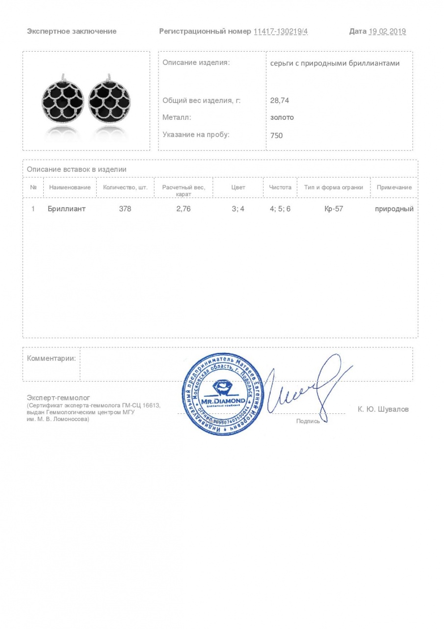 Золотые серьги с ониксом и бриллиантами 2.76ct Saggi