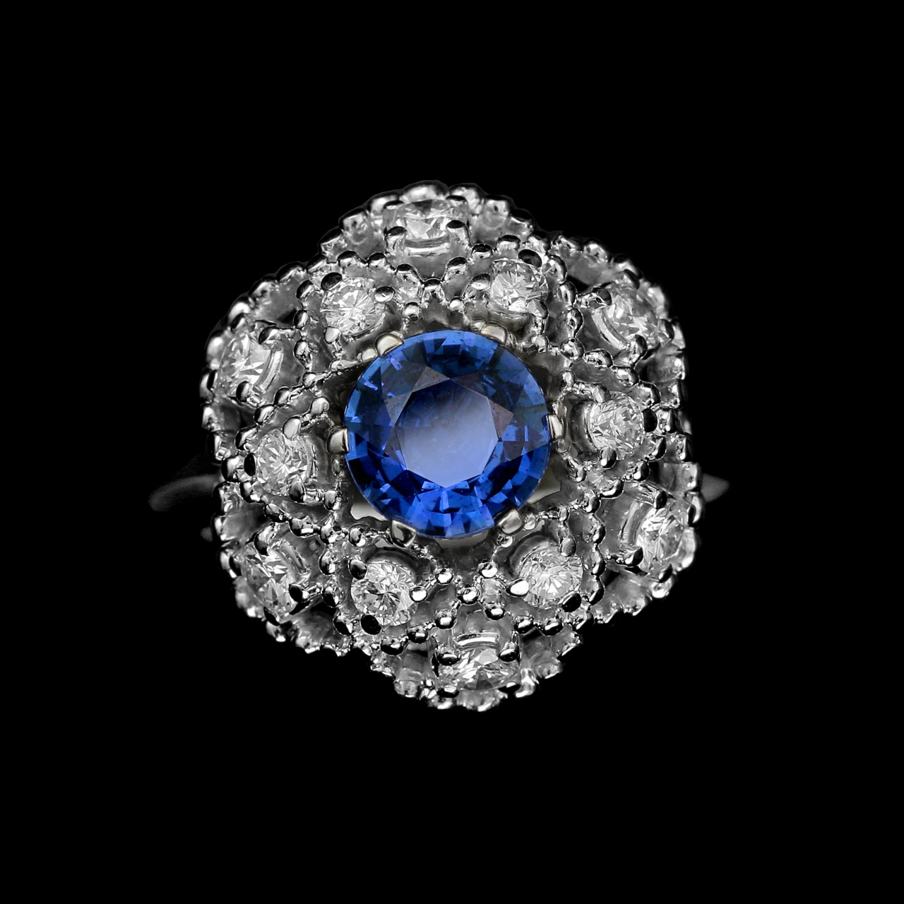 Кольцо из белого золота с сапфиром 0,93 карат и бриллиантами 0,58 карат