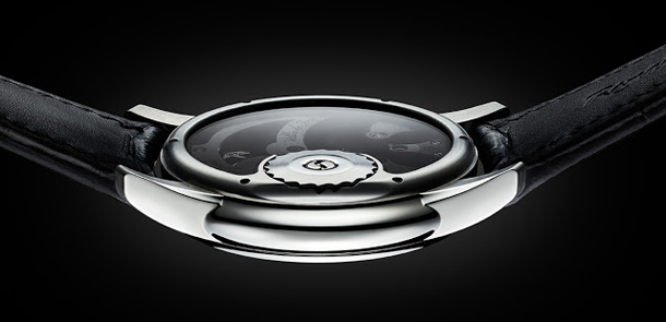 Корпус диаметром 43 мм из нержавеющей стали характеризуется чистыми линиями без видимой коронки. Фактически, заводная головка расположена сзади. Это увеличивает эффективность завода и водостойкость, одновременно уменьшая износ и напряжение компонентов. Коронка выдвигается для установки времени.