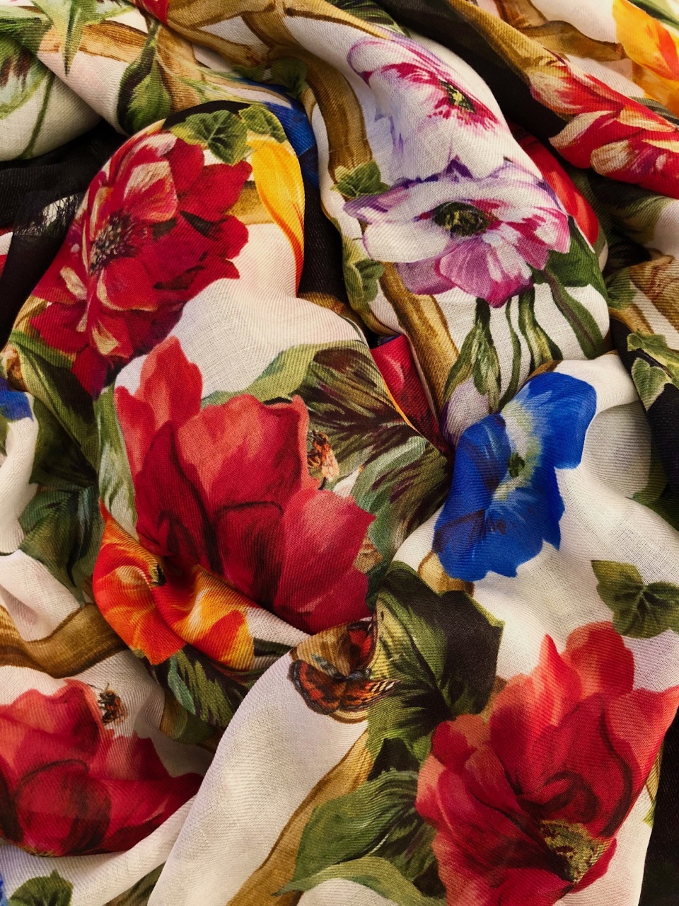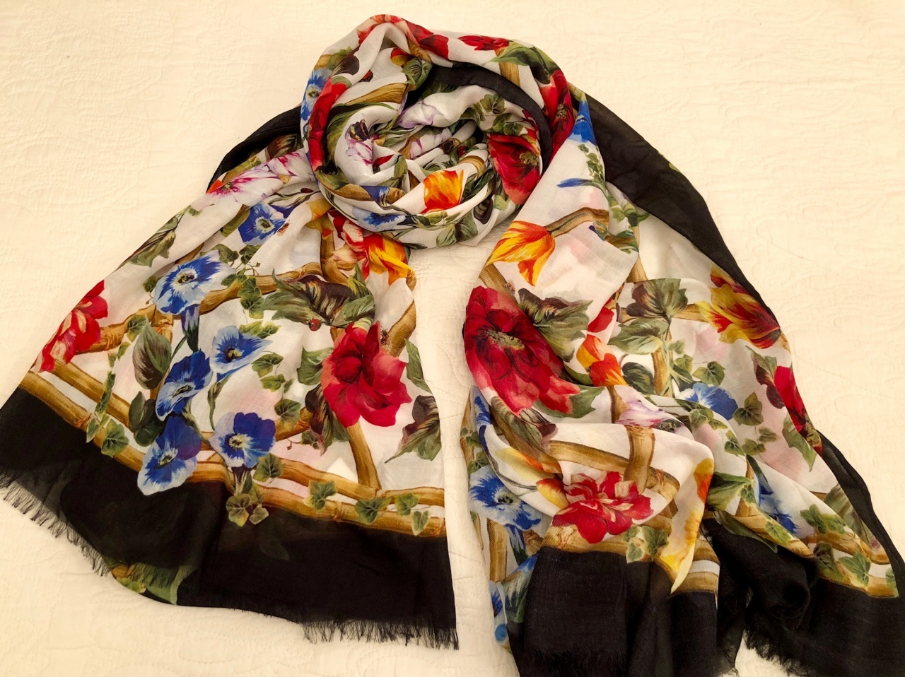 Палантин Dolce & Gabbana. Теплый, КАШЕМИР С ВИСКОЗОЙ Расцветка: яркие цветы и черный кант