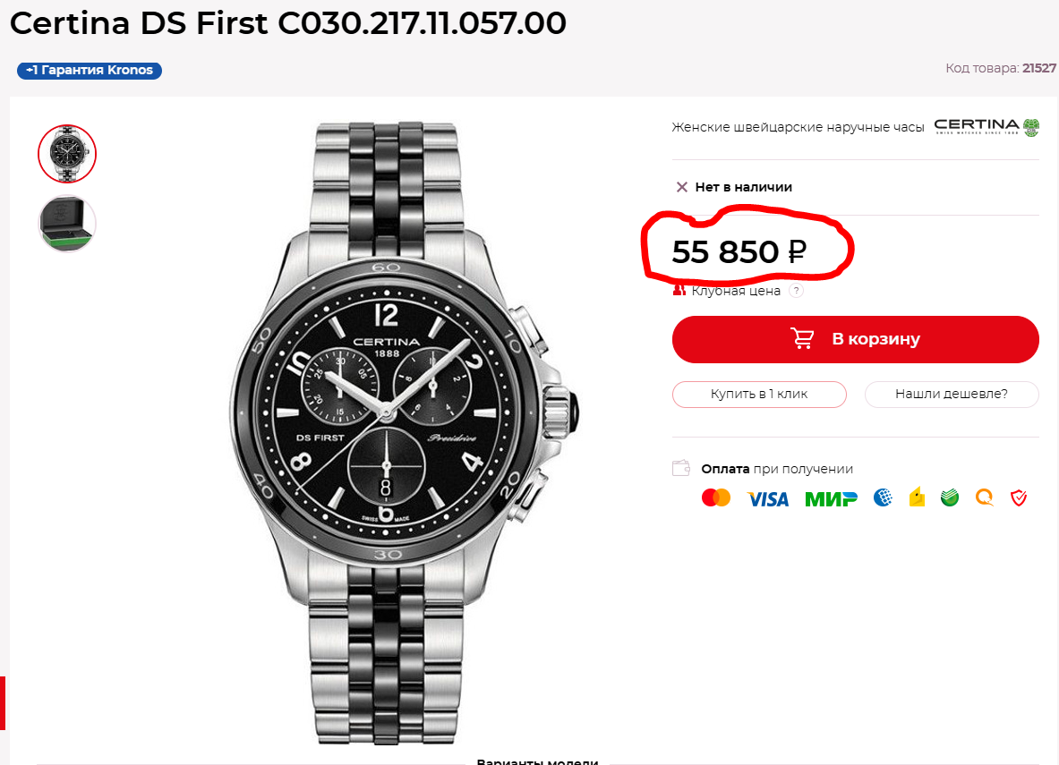 [ Женские ] CERTINA DS First Chrono Lady C0302171105700. Черный цифер / Браслет + керамика / d=38mm - Часовой форум Watch.ru