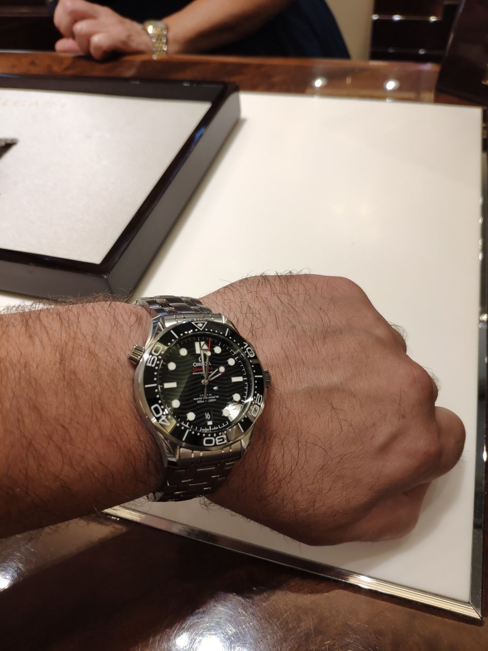 Привет друзья Омеговоды! Прогуливаясь по площади в Дрездене, нашел магазин, где были представлены все марки часов, которые мне были интересны. Год определял для себя претендентов. Омега АТ, была в фаворитах, на роль основных часов. И вот я сижу в магазине, передо мной продавец выносит по очереди желаемые модели. Естественно первым делом я попросил Омегу АТ и СМП. Сначала был СМП. Классные нарядные часы, но как вторые. Браслет классный.