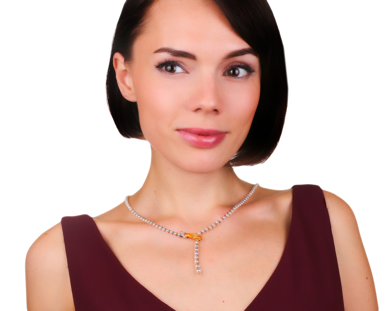 Золотое колье с жемчугом и бриллиантами 0.10ct Carrera y Carrera