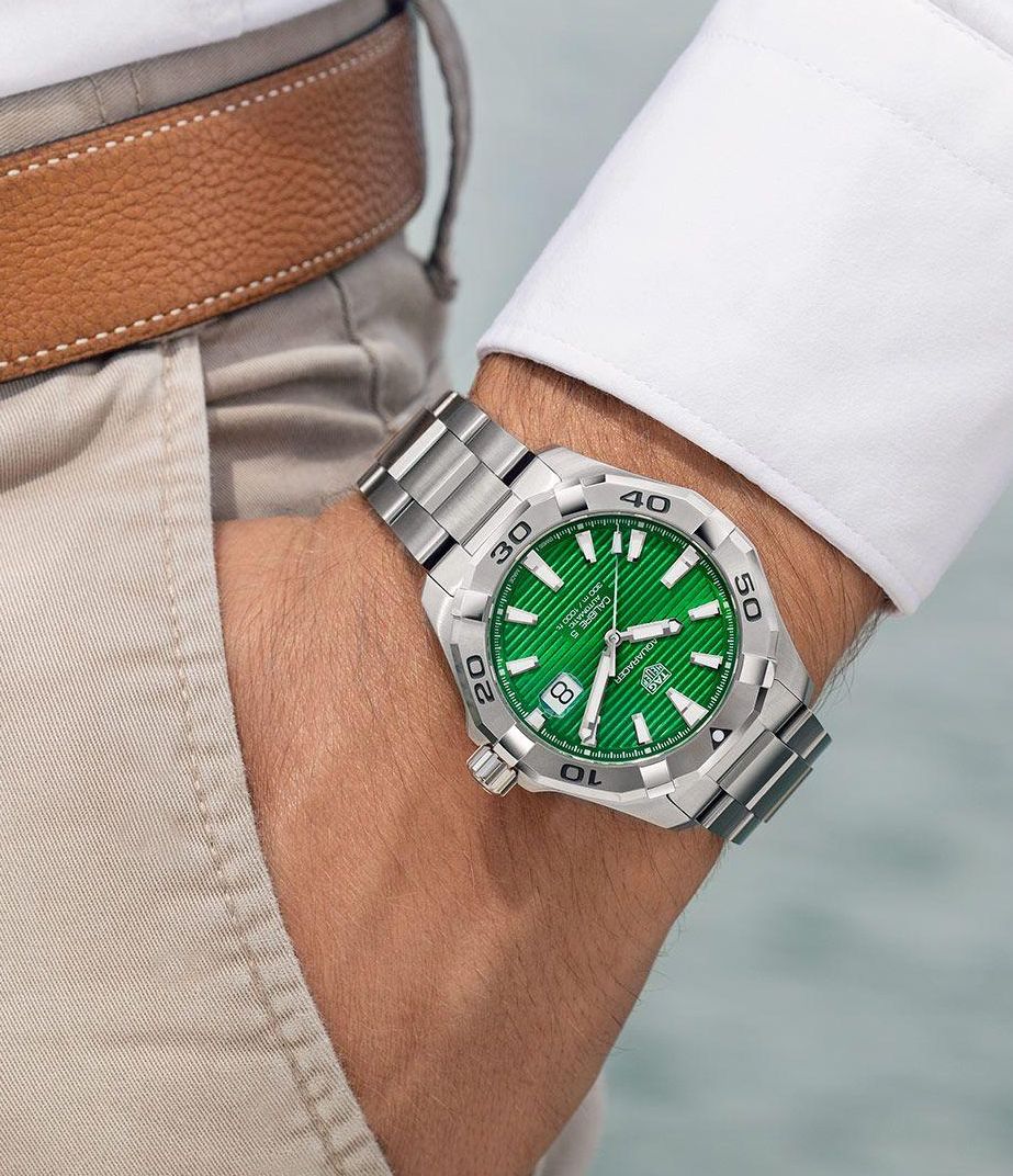 Швейцарская часовая компания TAG Heuer представила свою новую модель Aquaracer Green, дизайн которой выполнен в классическом дайверском стиле.