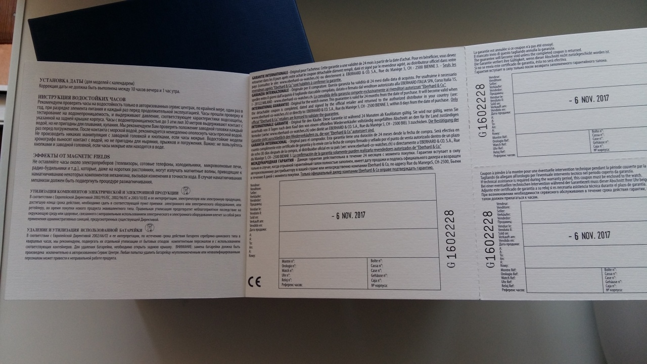 Комплектация: новые часы в пленках, коробки Eberhard внутренняя из итальянской телячье кожи и внешняя, гарантийный талон.