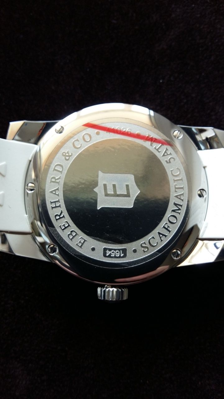 Задняя крышка: Задняя крышка на 6 винтах с логотипом Eberhard, серийным номером и моделью часов.