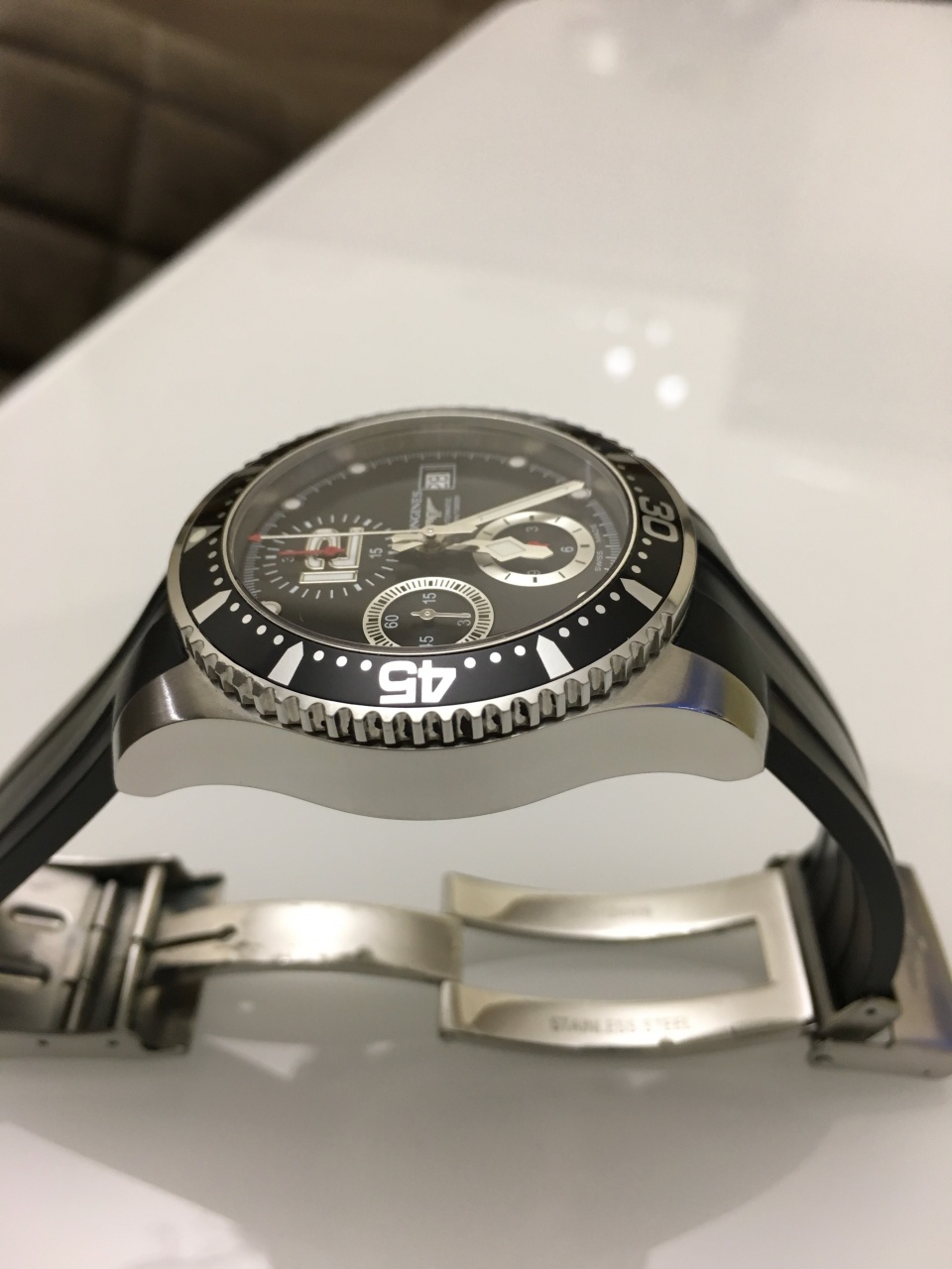 Оформление: Антибликовое покрытие стекла, однонаправленно вращающийся безель из анодированного алюминия, завинчивающиеся задняя крышка и заводная головка