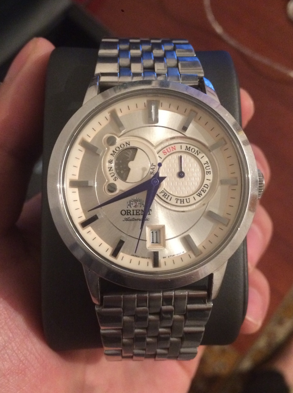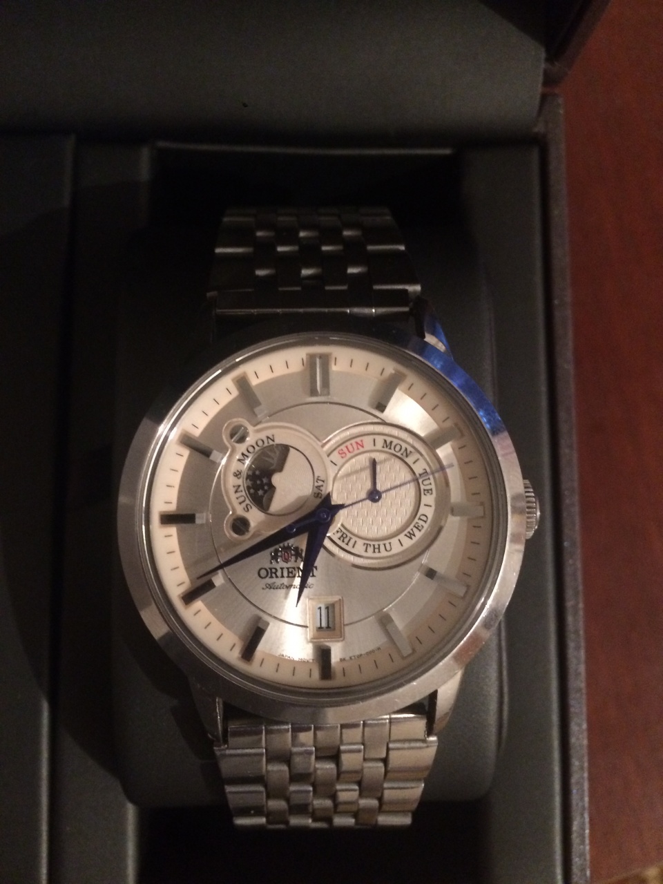 Механизм часов: Orient caliber 46В46 Made in Japan, 21 рубиновый камень, с запасом хода 40 часов. Тип механизма: Механика с автоподзаводом. Он, так же имеет: 21600 колебаний в час. Ударостойкие подшипники для защиты балансира с волосковой пружинкой от ударов. Заявленная точность хода +25-15 секунд в день.