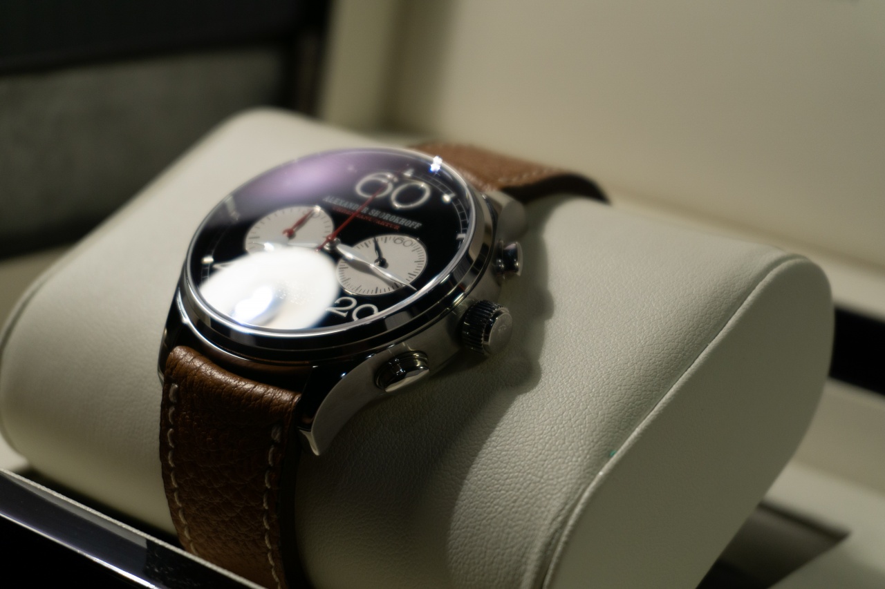 Обратите внимание, что это не более дешевая модель с 3133 механизмом, а с модифицированным ETA с хронограф модулем Dubois Depraz