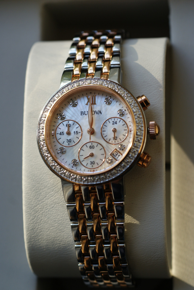 ЖЕНСКИЕ ЧАСЫ BULOVA 34 БРИЛЛИАНТА,ПОЗОЛОТА, БРАСЛЕТ, ХРОНОГРАФ, ПЕРЛАМУТРОВЫЙ ЦИФЕР ПОДАРОК ЛЮБИМОЙ