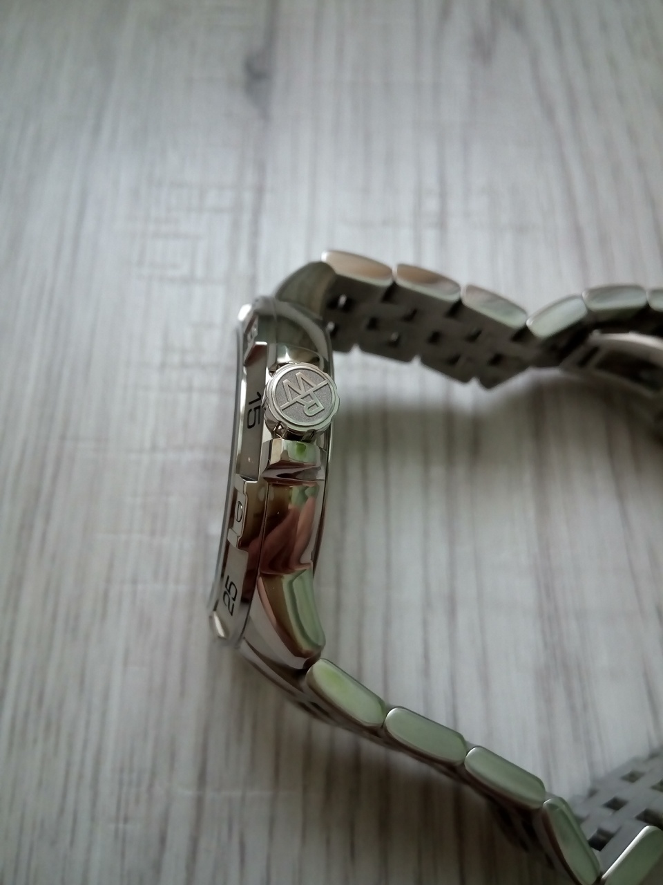 Данные часы одинаково уместны и в офисе и на отдыхе! Состояние хорошее, редкие следы от редкой и бережной эксплуатации, стекло чистое. Сидят часы на руке исключительно удобно. В комплекте только часы и 3 снятых звена браслета.