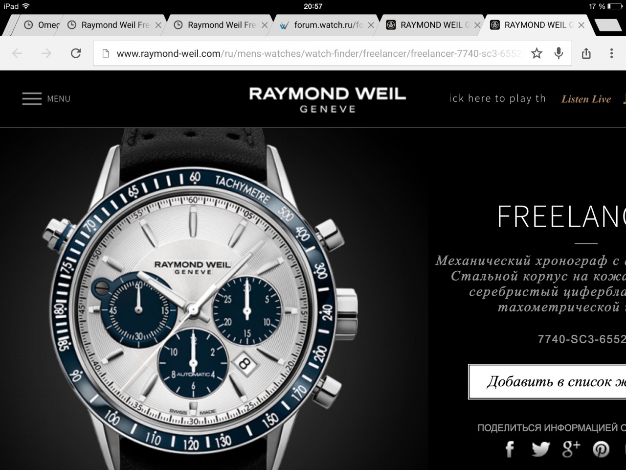 Цена модели Raymond Weil Freelancer Automatic Chronograph составляет 1960 евро или $ 2100.