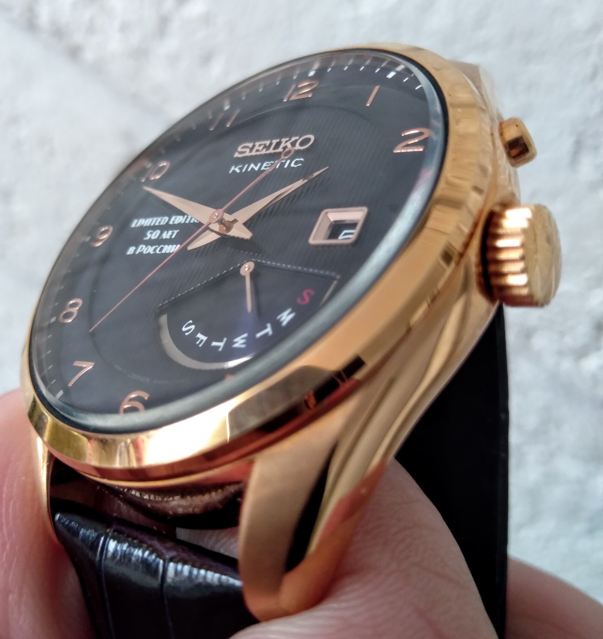 Продаю в полном комплекте редкие лимитированные (555 шт) Сейко, посвященные пятидесятилетию деятельности компании в России. О чем соответствующая надпись на циферблате и прозрачной задней крышке. Текст на Русском!. Часы б.у. , но скорее "музейного хранения", хозяин иногда выгуливал и заботился о состоянии аккумулятора калибра, выполненного с применением инновационной фирменной системы Кинетик. Диаметр 42мм, ремешок из теленка с тиснением под крокодила. Рvd "розовое золото", красивый насыщенно синий циферблат