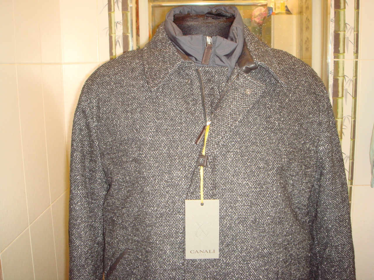 Продается новая стильная шерстяная мужская куртка бренда CANALI превосходного исполнения, серого цвета с вкраплениями, утепленная, простеганная внутри, осень-зима, воротник отложной с отделкой кожей, спереди застегивается на молнию и кнопки, ветрозащитная планка на молнии, наружные накладные карманы на кнопках, один прорезной кармашек с отделкой кожей, внутренние карманы на молнии, состав: 65% шерсть, 18% шерсть, 2% кашемир, остальное полиуретан, водоотталкивающая ткань, запатентованная система RAIN and WIND, все бирки и запасная фурнитура прилагаются , гарантированный 100% оригинал, размер 50(IT) , российский размер 50-52, необходимо мерить, производство Италия