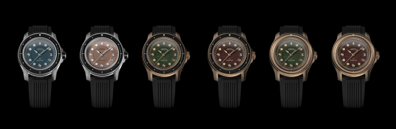 Всего создано 4 модели часов, 2 в стали и 2 в бронзе . Варианты циферблатов отличаются центральной частью , в стали она шероховатая а в бронзе имеет узор (3D рендеры).