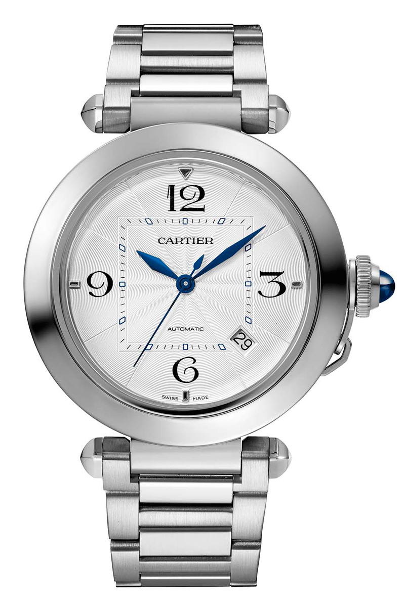 Pasha de Cartier 2020 года доступны в нескольких вариантах корпусов и двух размерах. Корпус более крупной модели имеет диаметр 41 мм и высоту 9,55 мм и изготавливается из нержавеющей стали, либо из 18-каратного желтого золота. Часы меньшего размера, классического для Cartier, имеют диаметр 35 мм и высоту 9,37 мм. Эта модель доступна в корпусе из нержавеющей стали или из 18-каратного розового золота с гладким или инкрустированным бриллиантами безелем. Циферблат новых Pasha de Cartier сохраняет классический дизайн «квадрат внутри круга», разделен на гильошированные секторы с арбскими цифрами и синеными стрелками. Филигранно выполненный квадрат минутной разметки придает классическому циферблату спортивной динамики. Обратите внимание, что у 41-миллиметровой модели есть дата, а у модели в размере 35 мм индикатор даты отсутствует.
