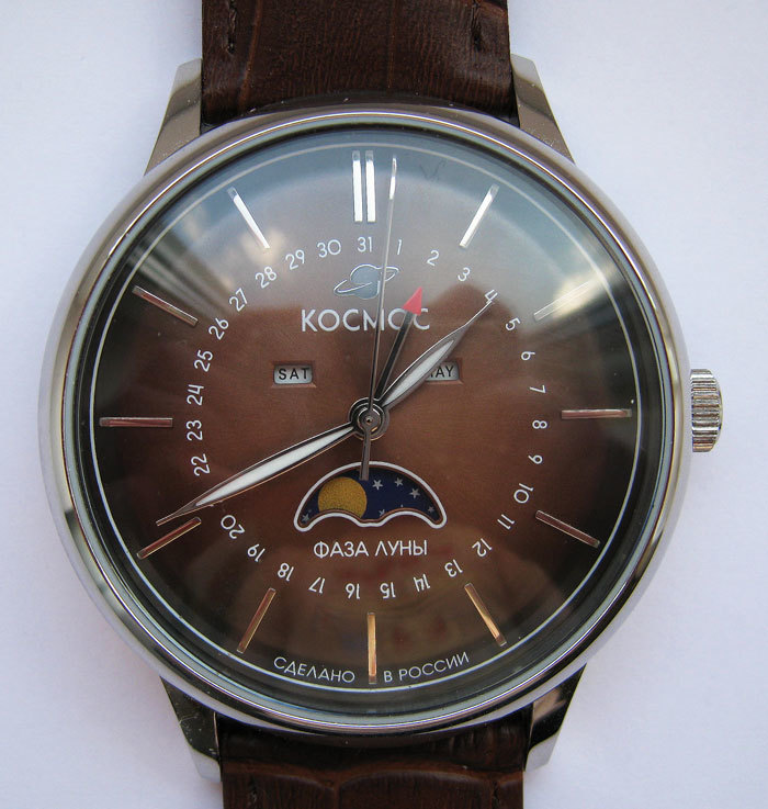 На фото часы мне понравились. В интернет магазине был большой выбор часов "Сатурн" с циферблатами и ремешками разных цветов, так же были варианты на браслете. В начале хотела купить часы с синим циферблатом, потом увидела с коричневым и мне этот вариант понравился больше.
