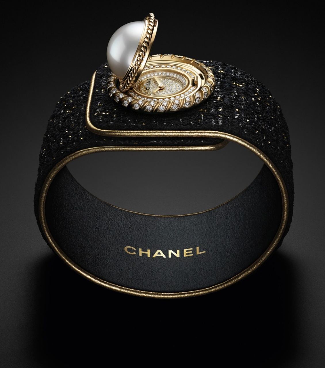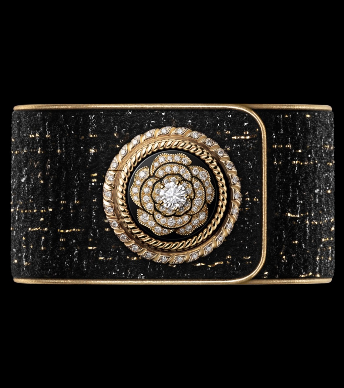Во-первых, ремешки-манжеты Mademoiselle Privé Bouton имитируют твид. Их выполнили из стали и белого золота, инкрустировали бриллиантами и обрамили золотым кантом, но они обхватывают запястье, как ткань.