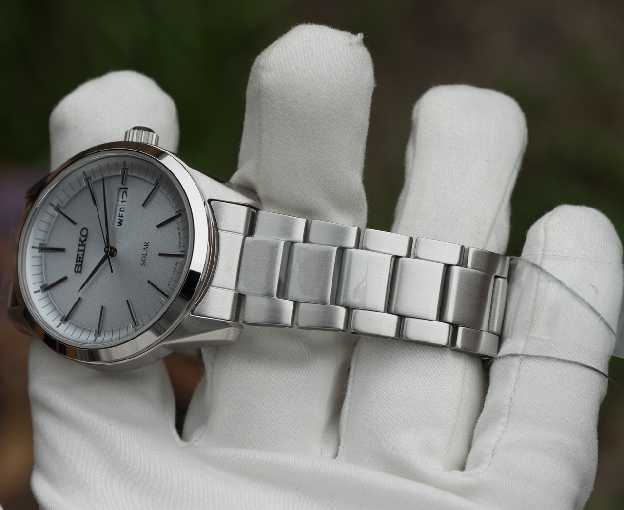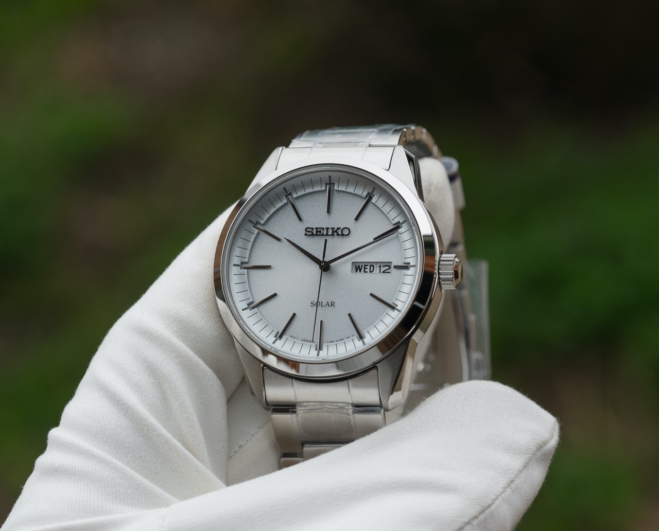 Светлый циферблат, тонированные стрелки, комфортный размер и вес, водозащита 100м
