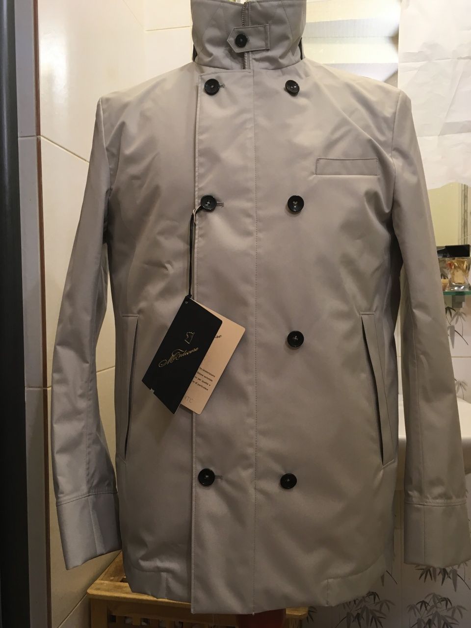 Продается новая мужская куртка бренда MONTECORE исполнения Premium, логотип, цвет - бежевый, высокий воротник, плотная ткань с пропиткой, непромокаемая, не продуваемая, ветрозащитная планка на пуговице, двубортная модель, молния и пуговицы с логотипом бренда, два наружных боковых прорезных кармана, два внутренних кармана на пуговицах, разрез сзади, внутренние швы потайные (как у бренда MOORER), состав: 100% полиэстер, все бирки и запасная фурнитура прилагаются, гарантированный оригинал, размер 54(IT), производство Италия.