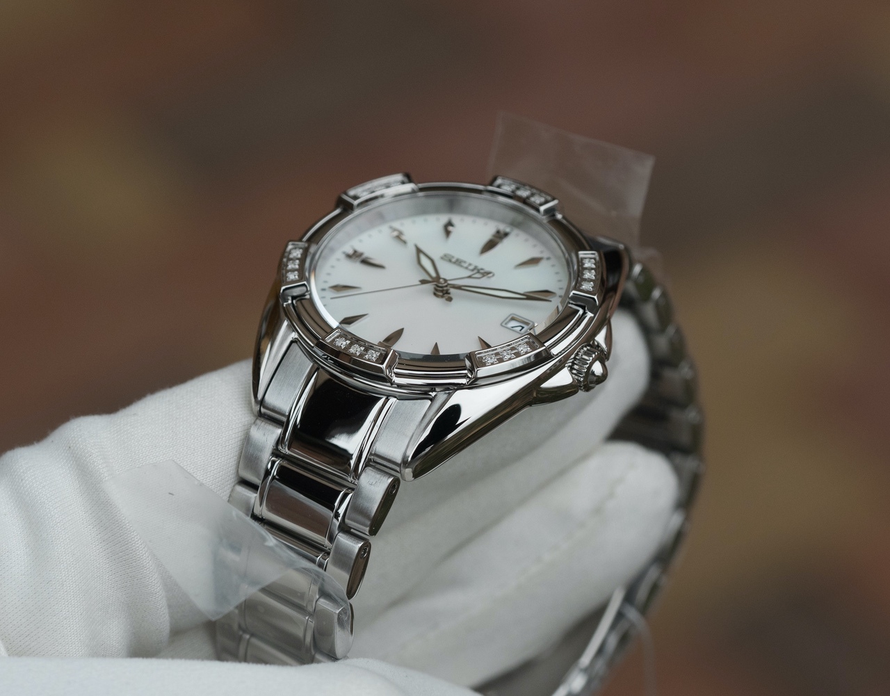 Светлый перламутровый циферблат, накладные полированные метки