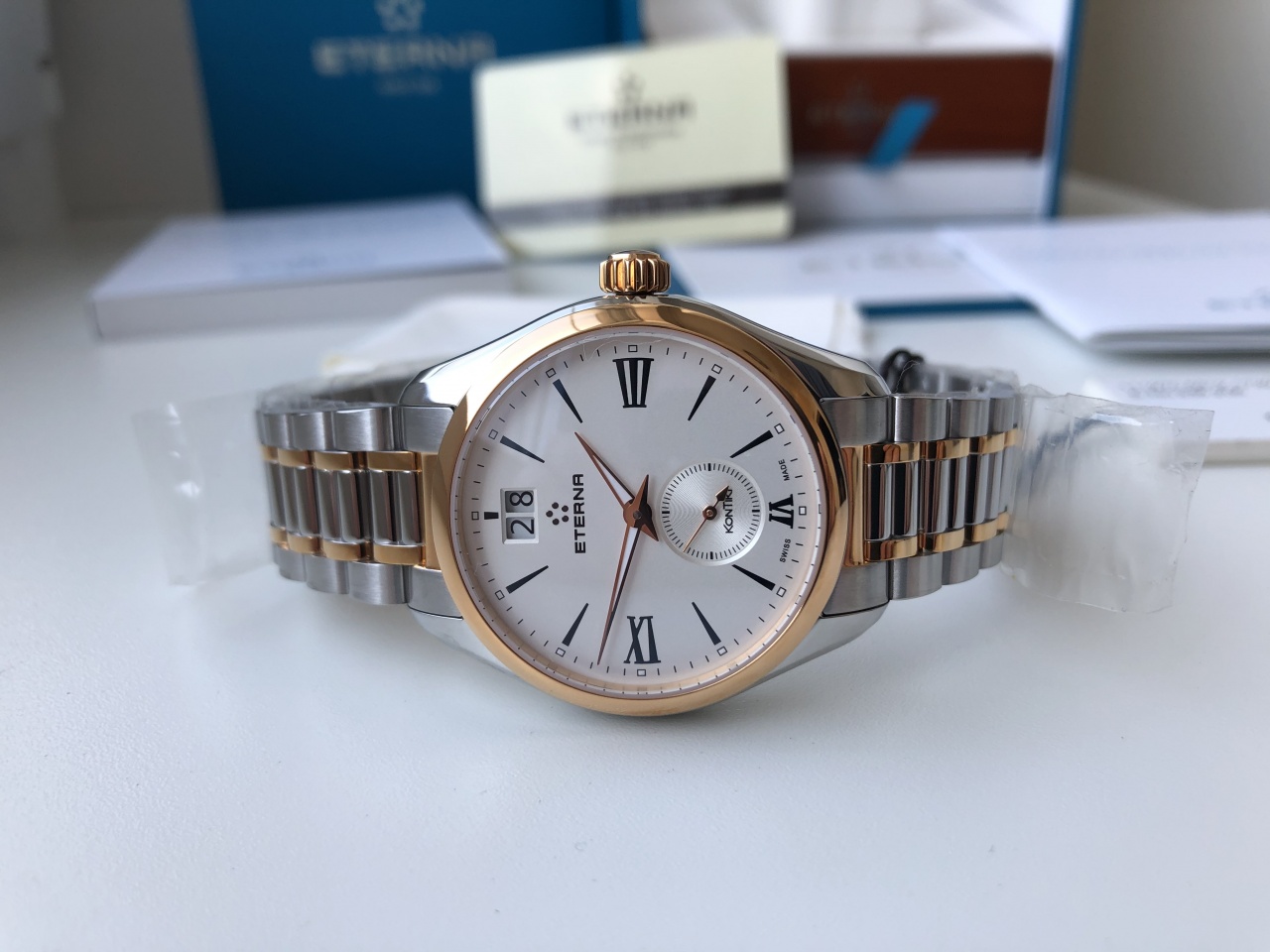 Вашему вниманию культовая модель от Eterna, история которой напрямую связана с Туром Хейердалом. В 50-е годы прошлого века Enerna представила спортивные часы, которые носил знаменитый норвежец во время своего плавания через Тихий океан на деревянном плоту «Кон-Тики». После этого линейка получила название в честь плота и с тех пор регулярно обновляется. Характерная особенность этих часов — треугольные индексы у меток 3, 6, 9 и 12 часов. Индексы по форме напоминают зубы акулы (ну или паруса, это как кому больше нравится).