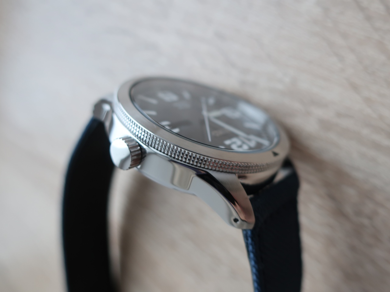 Кварцевый трехстрелочник на калибре V158, SOLAR - зарядка от любого источника света с запасом хода до 300 дней в темноте. Функция предупреждения о скором разряде батареи за 3 дня до полного разряда. Защита от перезаряда. День недели и дата. Стальной корпус. Минеральное стекло повышенной прочности Hardlex. Темно-синий циферблат с арабскими цифрами, Люм LumiBrite на стрелках и метках, темно-синий нейлоновый ремень. Расстояние между ушками 22мм. Завинчивающаяся задняя крышка. Водозащита: 10 bar, 100 meters (330 feet). Диаметр: 43мм.Толщина: 11мм. Вес: 68г.