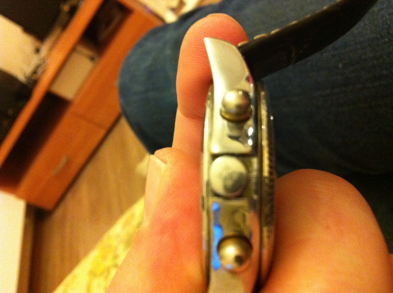 Снимая с руки говорит, вот, он точно такой же как оригинал и протягивает его мне))