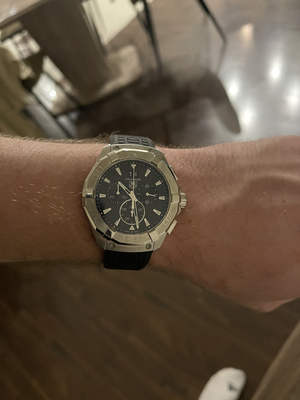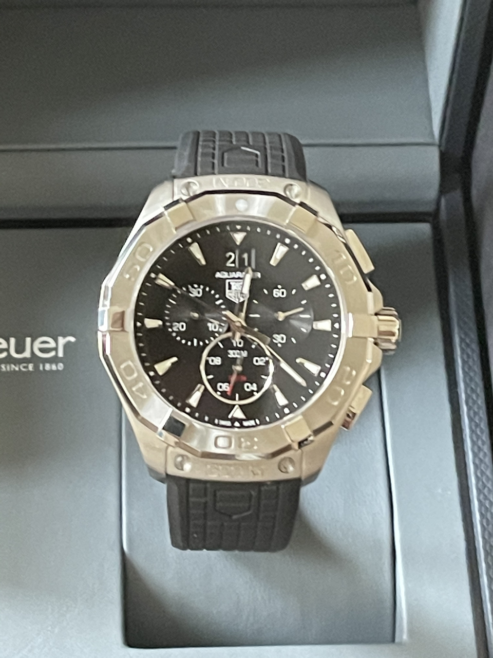 Друзья покупал эти часы меньше двух недель назад в бутике Tag Heuer на Кузнецком мосту за 139 000. Они абсолютно новые, помимо чека и коробки есть даже оригинальный пакет. Единственное, когда я их мерил, снял бирку, пока не могу ее найти.