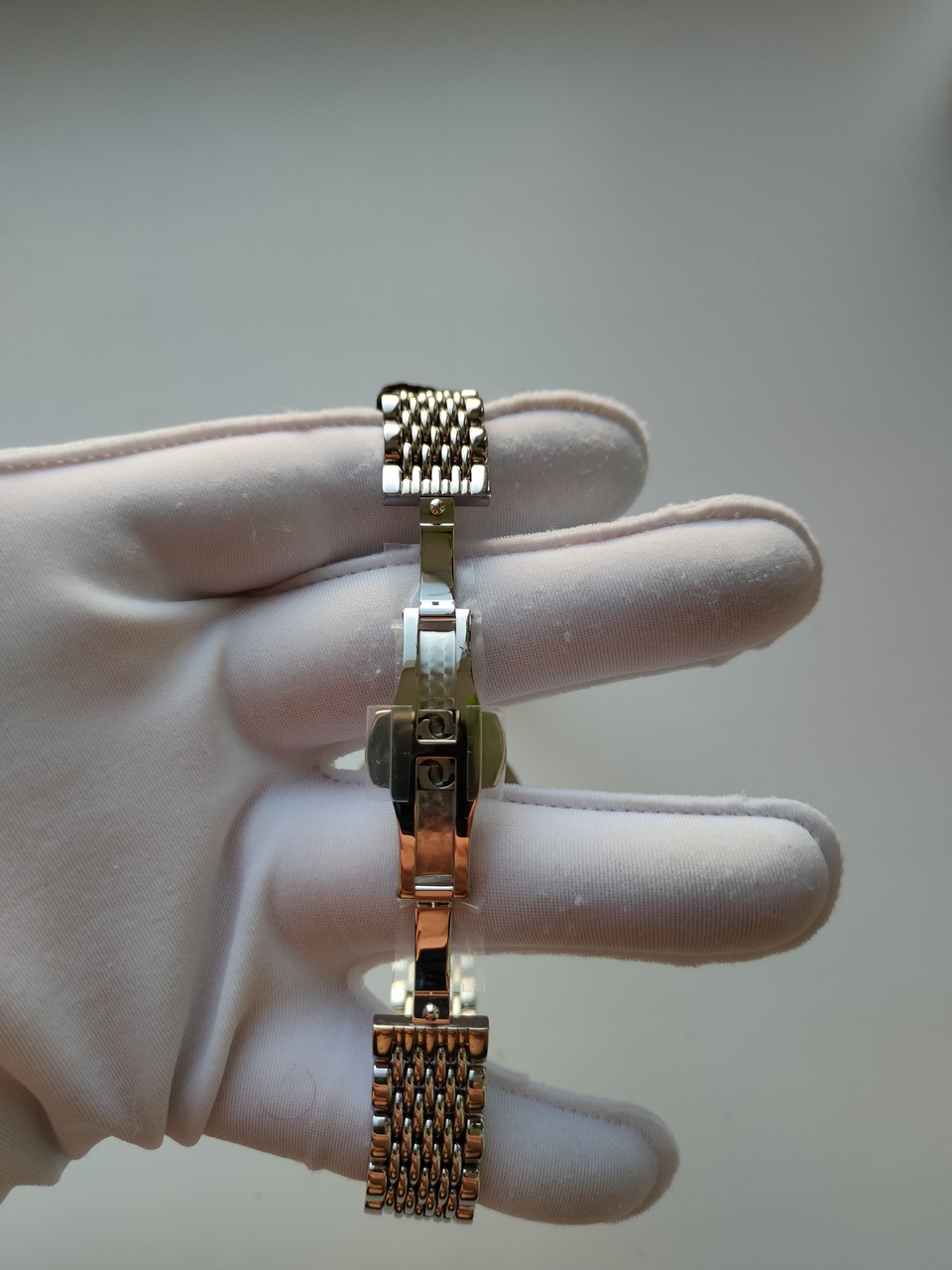 Предлагаю к продаже шикарные часы от уважаемого производителя. У данной модели просто бесподобный цвет перламутра на цифере. В сумме с накладными метками с бриллиантами (10 штук) просто бомба! Остальные характеристики тоже не подвели: дорогой калибр ETA, классный браслет с раскрывающейся застежкой, кабошон в заводной головке. В живую часы выглядят намного красивее и богаче чем на фото. Осенняя пасмурная сибирская погода, к сожалению, украла долю качества фото при съемке