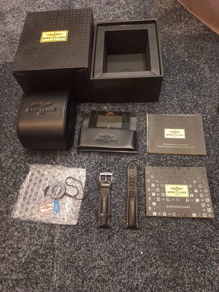 В продаже Breitling Chronomat B01, 44 мм., Ref. AB0110. Часы находятся в Москве. Состояние хорошее. Второй хозяин, покупал тут на форуме. Синий ремень НЕоригинальный. Оригинальный кожаный ремень в комплекте. Торга нет. Только личная встреча, никаких пересылов. К проверкам готов. По обмену - предлагайте только золотые часы. Возможна доплата.
