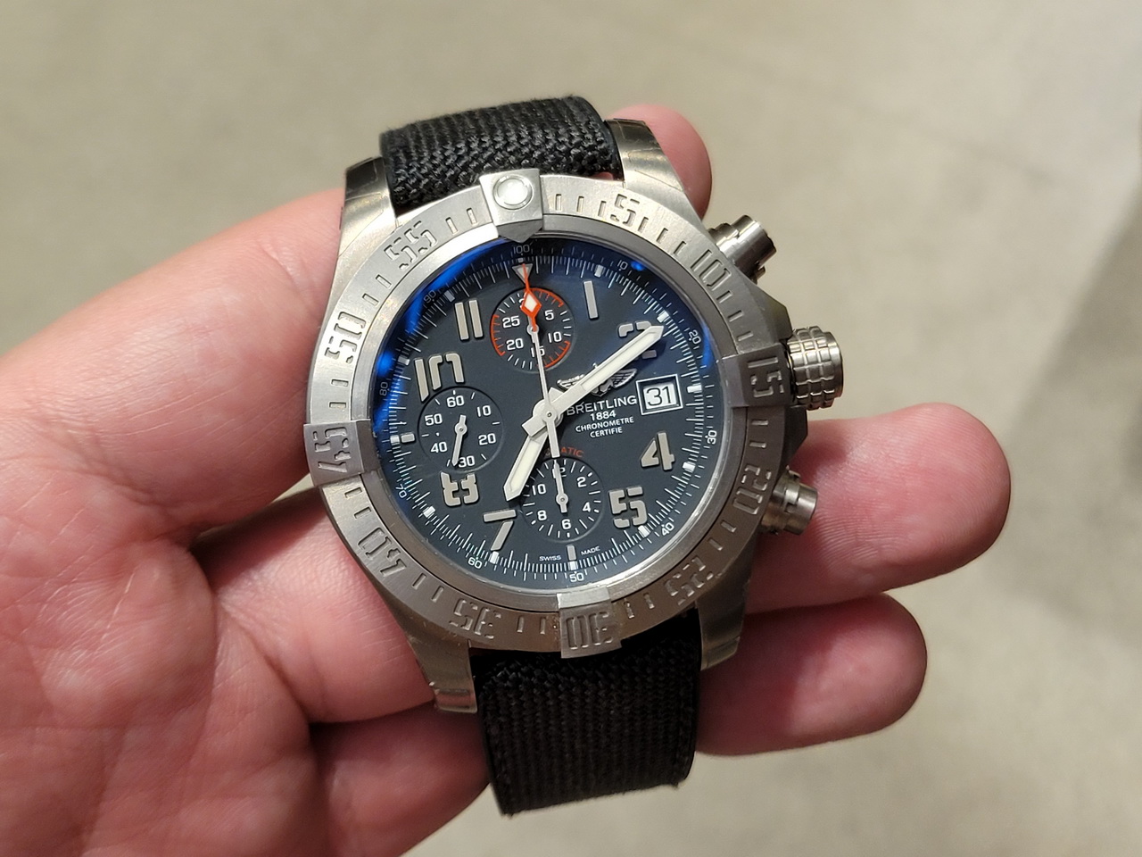 Breitling много. И часто видел на руках у местных жителей. Скидки дают охотно, хотя ценники заманчивыми мне не показались. Avenger Bandit (нижняя фотка) за 21 800 дирхам продают (до вычета налога). Новый навороченный календарник в синем корпусе и с золотыми акцентами за 70 000 дирхам продают (торгуются до 60к и даже ниже после согласования с менеджментом; у нас он 1 374 300 официально стоит). Не понял я новую ценовую политику B - цены выросли, но сходу на новинки скидки дают. Может быть не надо цену в принципе завышать на 10-15%, на которую сразу продавцы торгуются?