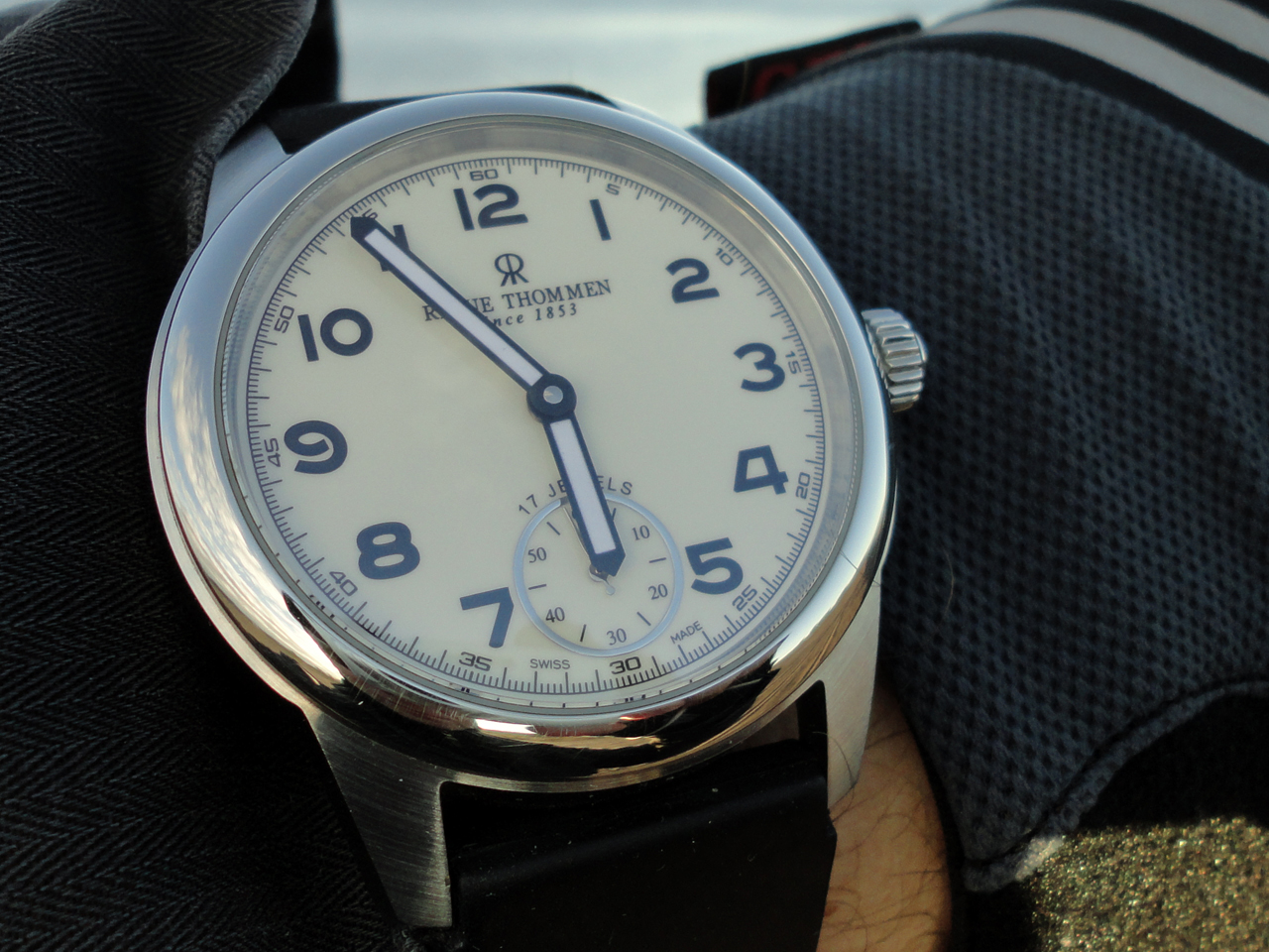 42 мм, выпуклый сапфир, крышка прозрачная, декорированный Unitas 6498-1, 100 м., стрелы с белой светомассой, циферблат цвета слоновой кости.