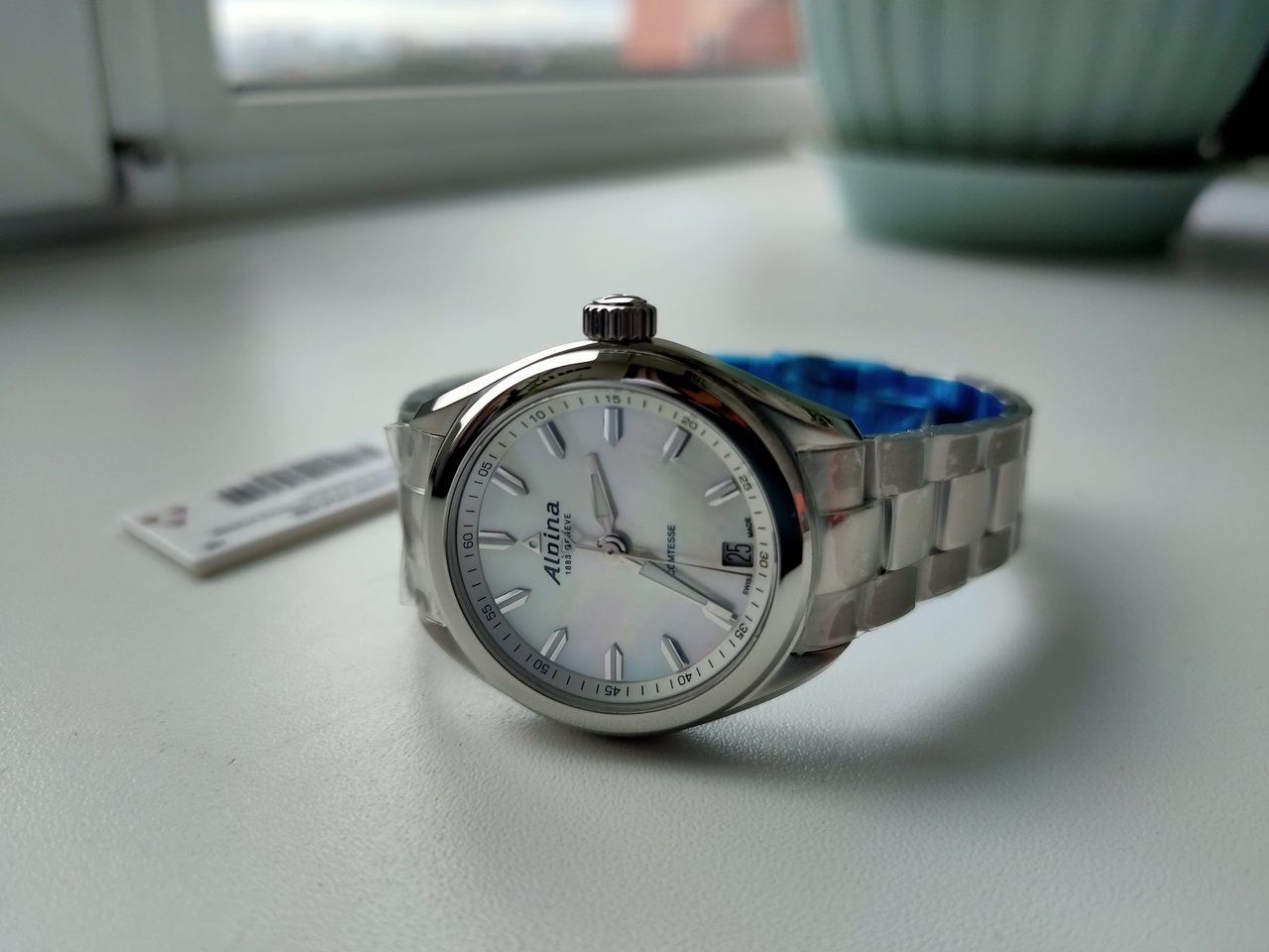 Предлагаю к продаже шикарный женский повседневник, подходящий на все случаи жизни - модель Alpina Comtesse с перламутровым цифером. Часы исполнены максимально качественно - отличный литой браслет с застежкой-бабочкой, шикарный перламутровый цифер с накладными элементами и отличным люмом на метках и стрелках, безупречное качество полировки и сатинирования поверхностей. Соотношение цена/качество на высочайшем уровне