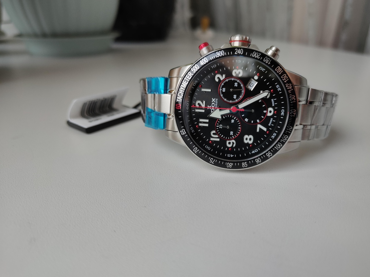 В продаже отличный крупный спорт-хронограф от уважаемого производителя. Очень интересная и качественно исполненная модель с вниманием к деталям. Цифер с накладными элементами и люмом на цифрах и стрелках, отличный плотный литой браслет с сочетанием полировки и практичного сатина. В целом имеем крепкий повседневник фактически без слабых сторон.