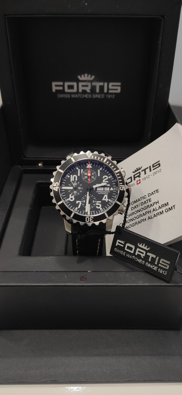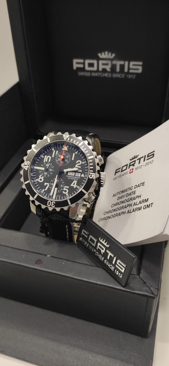 Fortis B-42 marinemaster Chronograph (черный цифер) на коже