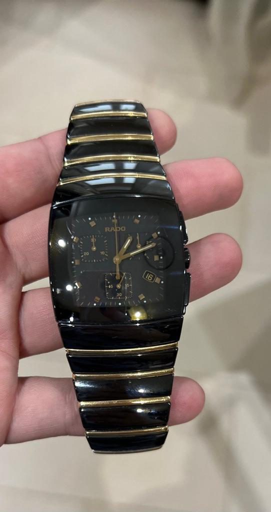 Продам мужские часы Радо. Корпус и браслет из керамики, вставки из золота. На руке выглядят красиво! Узнаваемость 100%-я. Станут достойным пополнением любой часовой коллекции, потому что имеют яркий эксклюзивный дизайн, не схожий ни с одной другой маркой. Хороший подарок на НГ
