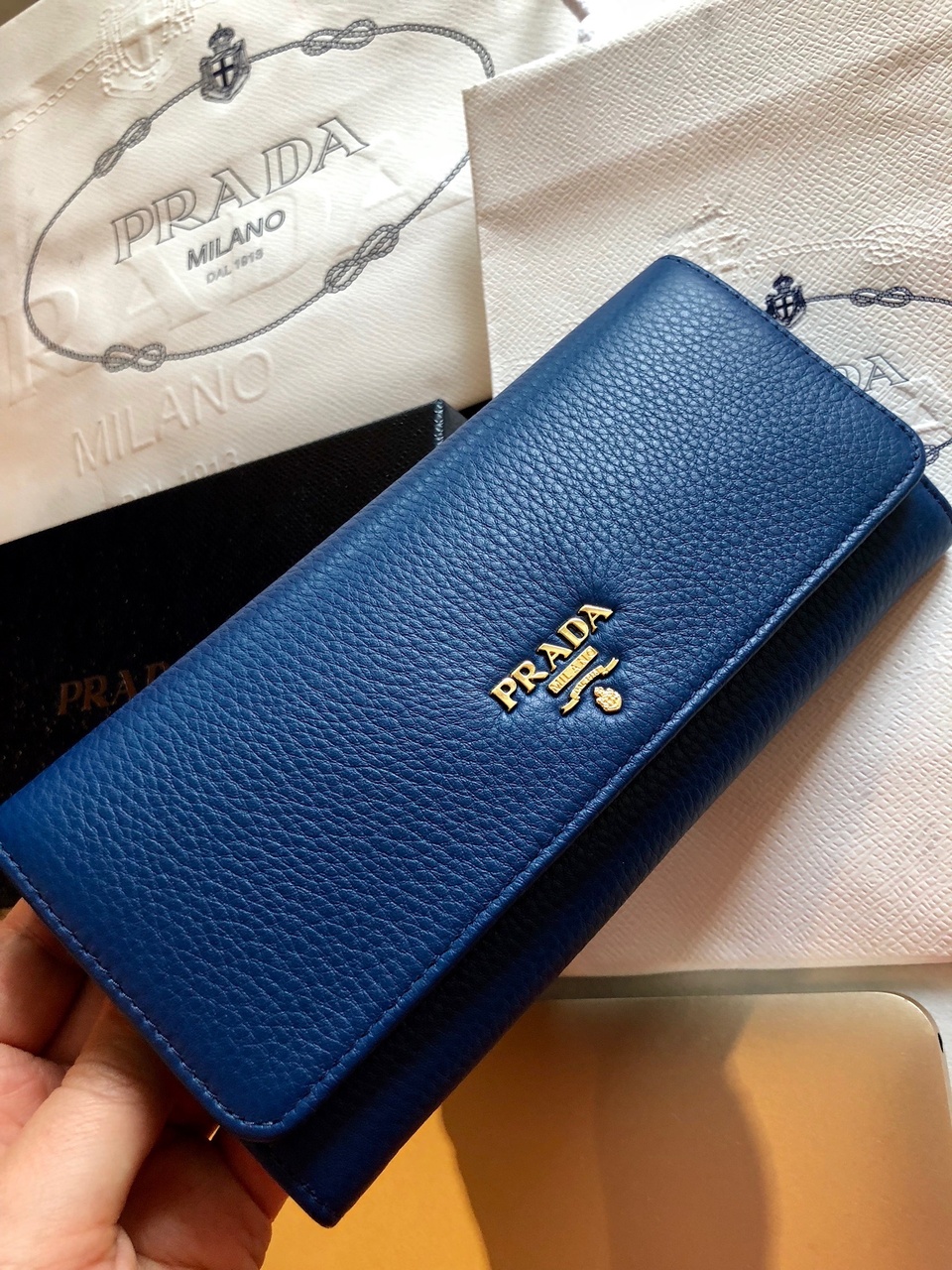 Классическая, всегда актуальная модель, со встроенной визитницей (отдельно визитницы у PRADA стоят не менее 12-14т.р). Портмоне полноценного формата, 19 на 9,5 см. Мягкая зернистая кожа, выделки Vittelo Grain, очень ноская и стойкая к царапинам, насыщенного темно-синего цвета (BLUETTE). На клапане металический золотой лого бренда, золотая фурнитура.