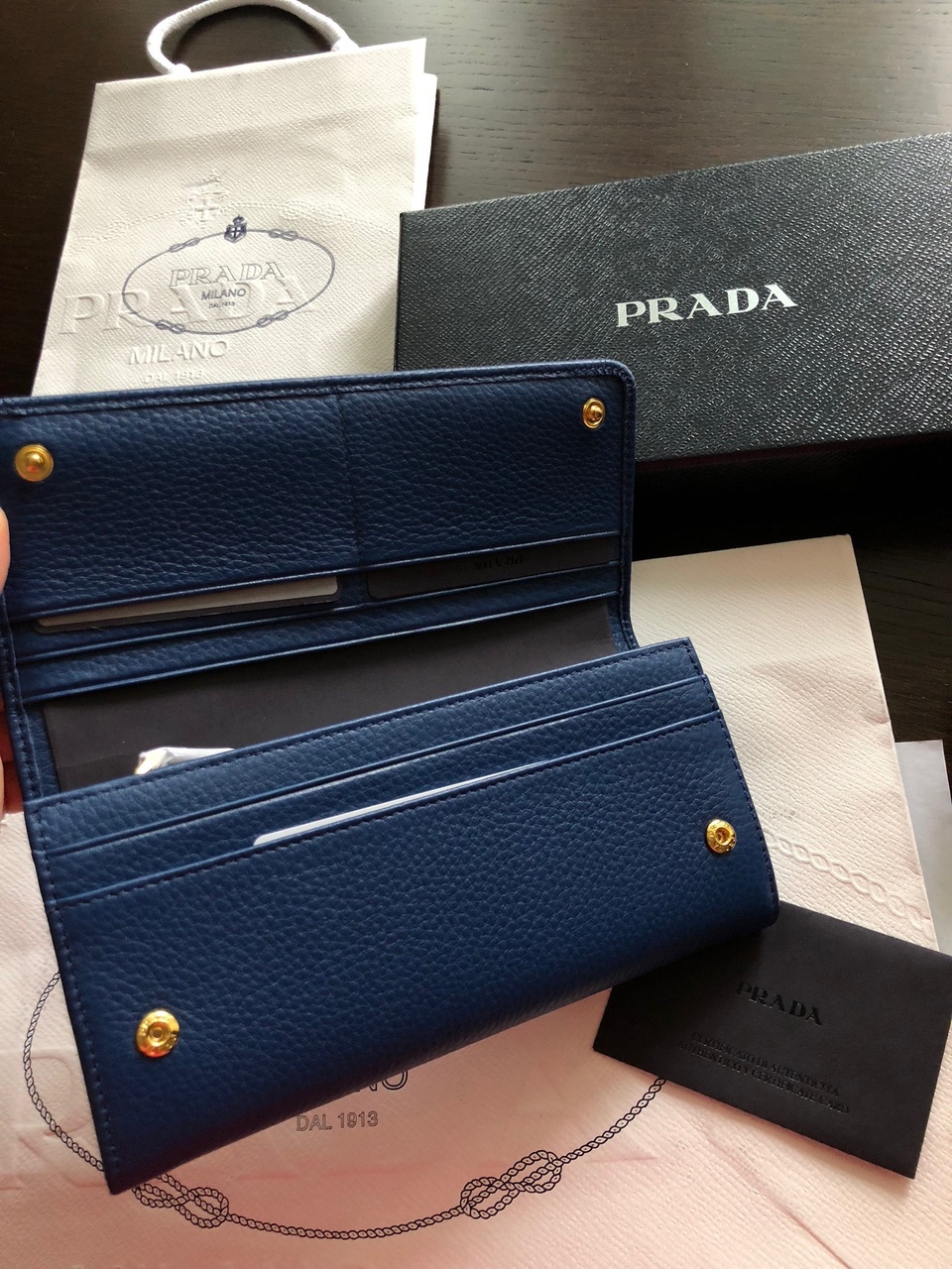 PRADA. Женский кошелек. Большой, на кнопках. НОВЫЙ. Мягкая зернистая кожа (Vitello Grain). Цвет: темно-синий (BLUETTE)