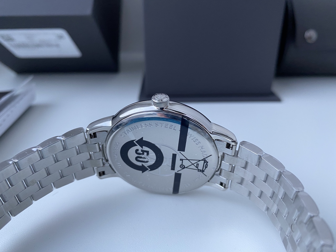 Отличная отделка корпуса, циферблата с накладными метками и браслета - всё увесиcтое, литое. Браслет на винтах.