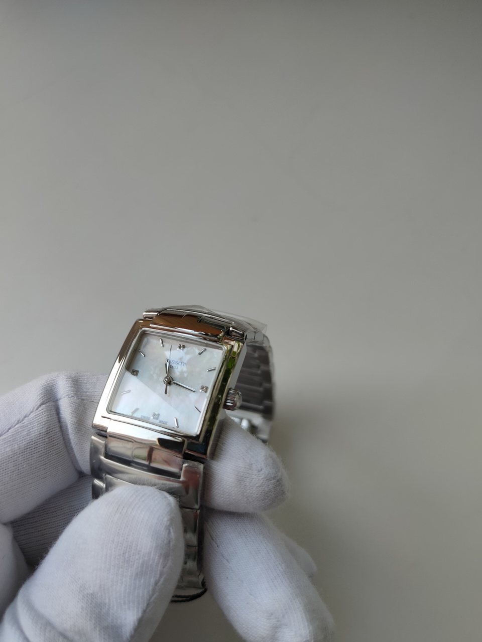 Предлагаю к продаже отличный вариант недорогого повседневника или оригинального подарка от уважаемого производителя. Для своей ценовой категории все исполнено на очень высоком уровне - отличный плотный литой браслет с застежкой-бабочкой, кварцевый калибр ЕТА, цифер с перламутром, накладными метками и 4 бриллиантами-метками, кабошон в заводной головке. Часы в живую выглядят интереснее чем на фото и ощущаются очень добротно.