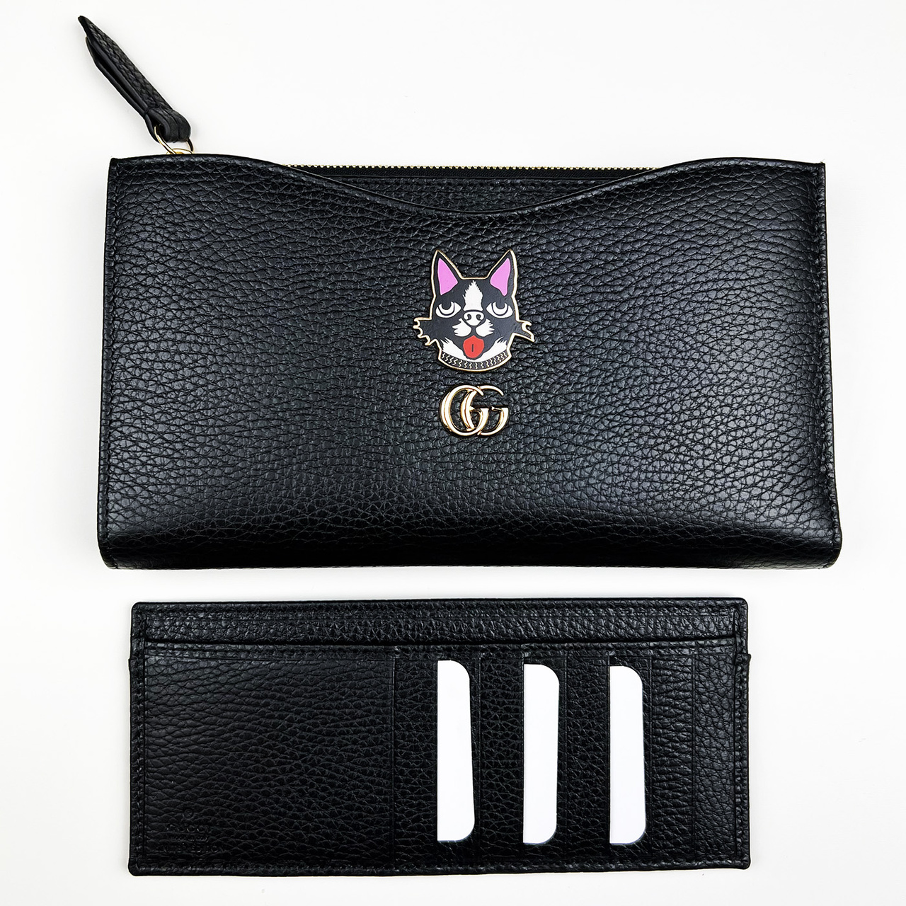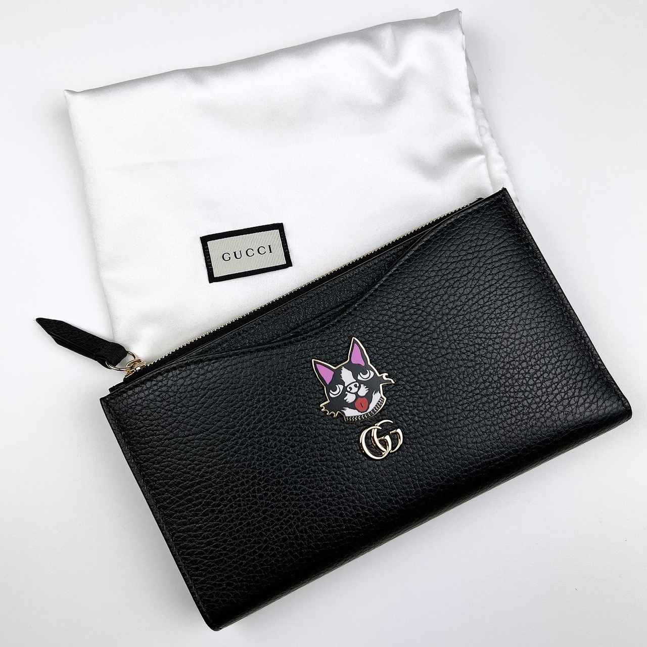 "Этот клатч Gucci выпущен ограниченным тиражом, а это значит, что вы будете среди немногих женщин, которые владеют одним из них. Он входит в капсульную коллекцию, главными героями которой стали бостонские терьеры креативного директора Gucci Алессандро Микеле по кличке Боско и Орсо. Аксессуар изготовлен из кожи, спереди украшен мордочкой терьера Боско и логотипом GG Marmont."