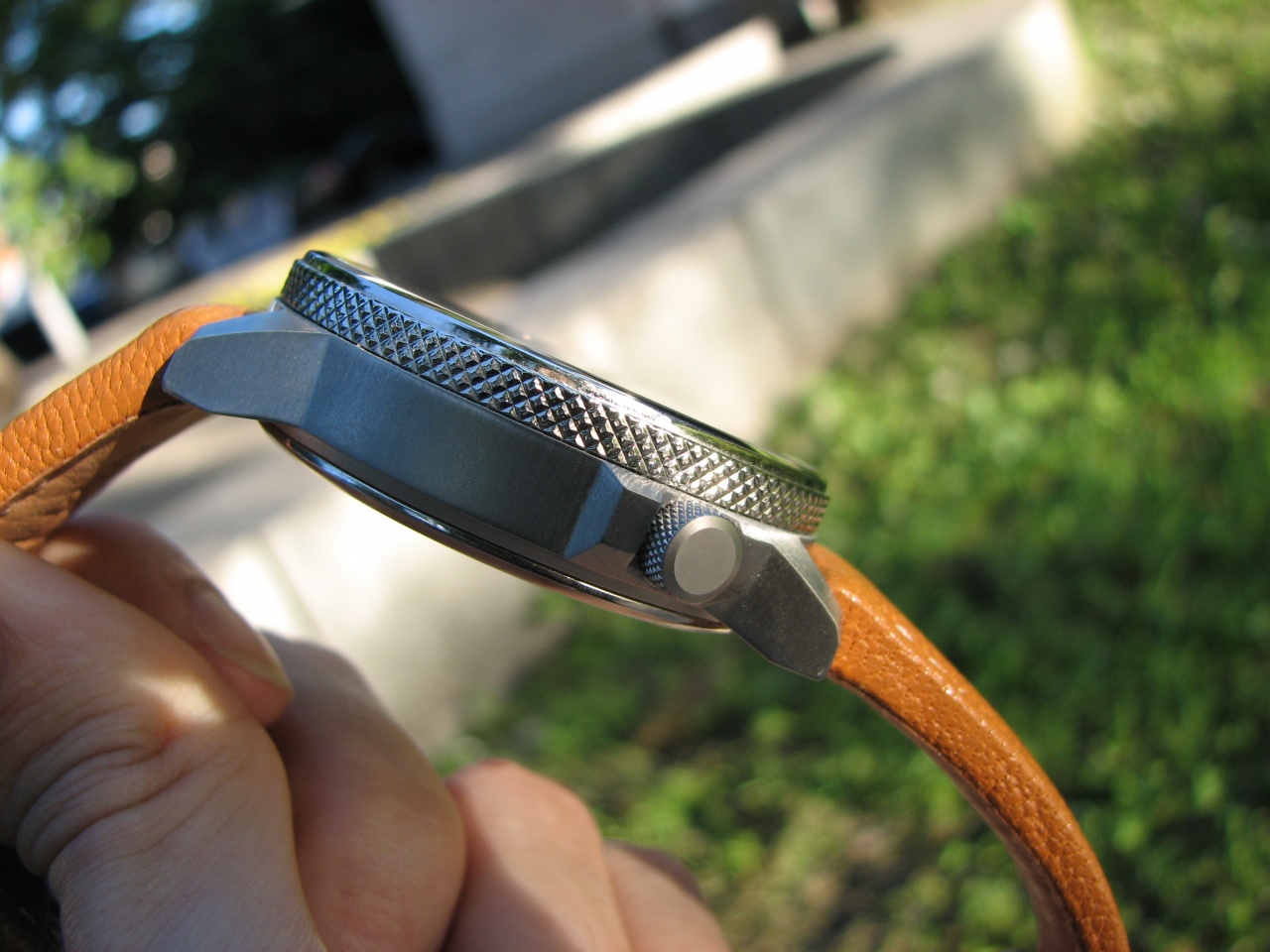 Ремень достаточно мягкий и очень толстый у корпуса, около 4.5мм, 23мм шириной, переходит 2мм толщины и 16мм ширины у застежки. Застежка-бабочка, к сожалению, штамповка, хоть и толстой стали, скорее всего буду менять вместе с ремнем - хочется попробовать более темный и на бакле.