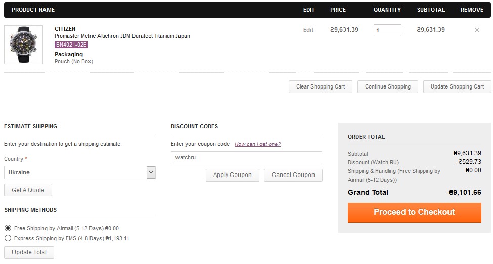 dutyfreeislandshop.com - $313 со скидкой по коду watchru превращались во вполне бюджетные $295 с бесплатной доставкой. Оплата и пересылка прошла без каких-либо особенностей, доставка заняла 14 суток - из них 3е суток Укрпоштой - попала на майские праздники. Посылка пришла без коробки, дабы не привлекать лишнего внимания к бандерольке, отлично упакованная во много слоев пленки с воздушными прослойками и мешочек DFI. Часы шли, что несколько успокоило от "глубокого разряда аккума". Если попробовать расшифровать серийник как "первая цифра год, вторая месяц" получается произведены в январе 2014.