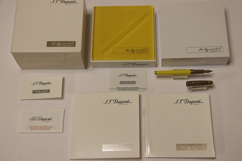 S.T.Dupont, отдавая дань уважения этому легендарному человеку, выпускает лимитированную серию, состоящую из зажигалок и авторучек (перьевая ручка, шариковая авторучка и уменьшенная шариковая ручка, основанные на модели S.T. Dupont Olympio). Платиновые зажигалки украшены автопортретом Энди Уорхола, а также, соответственно, портретами Мэрилин Монро и Элвиса Пресли, работы Энди Уорхола. Все элементы коллекции несут на себе крылатую фразу Уорхола: "В будущем каждый будет иметь право на 15 минут славы" ("In the future, everyone will be world-famous for 15 minutes").